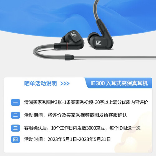 当前的位置: 首页 > 今日值得买 > 森海塞尔(Sennheiser)IE系列 高保真旗舰 可拆卸MMCX接头耳塞耳挂 入耳式HiFi音乐有线耳机 IE 300