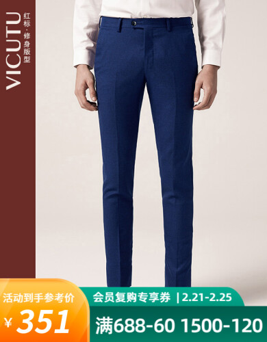 当前的位置: 首页 > 今日值得买 > 威可多(VICUTU)男士套装西裤纯羊毛西装裤轻正装商务修身西服长裤VRS19321967 蓝色 175/84A