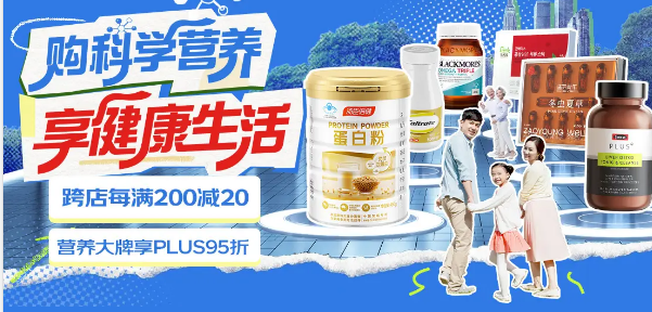 活动力度:满200元减20,营养大牌享PLUS 95折;