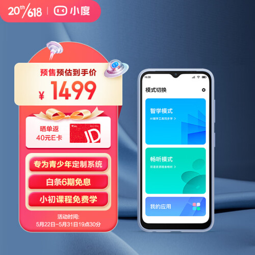 当前的位置: 首页 > 今日值得买 > 小度青禾学习手机V20 AI学习助手 6+128G 家长管控 浅蓝色壳