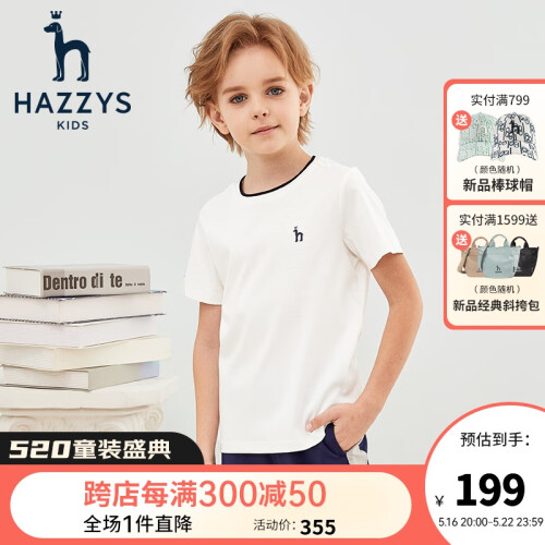 当前的位置: 首页 > 今日值得买 > HAZZYS童装哈吉斯男童短袖圆领衫夏季新品中大童纯色休闲T恤 本白 110cm