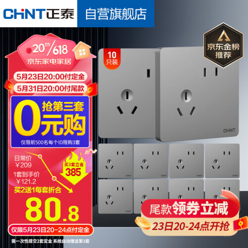 当前的位置: 首页 > 今日值得买 > 正泰(CHNT)开关插座墙壁面板家用86型面板斜五孔插座NEW6C 10只装幻银灰