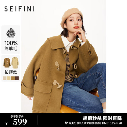 当前的位置: 首页 > 今日值得买 > 诗凡黎('SEIFINI)双面毛呢外套女秋冬新款学院风牛角扣100%绵羊毛大衣 深黄棕(一手长) 155/80A/S