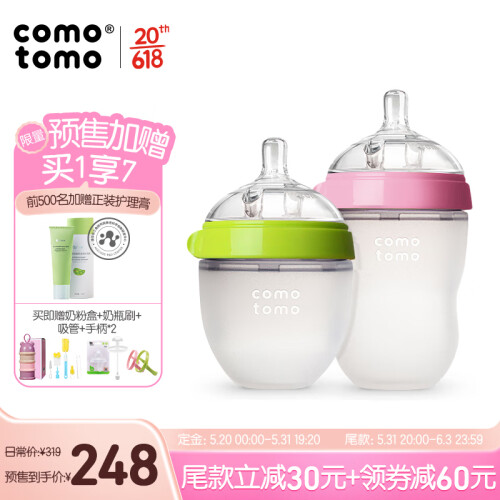 当前的位置: 首页 > 今日值得买 > 可么多么(como tomo)【预售】新生婴儿断奶仿母乳硅胶奶瓶0-6个月150+250ml可配吸管