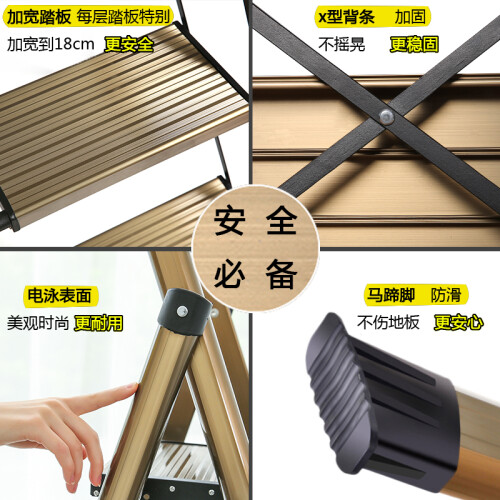 当前的位置: 首页 > 今日值得买 > 奥鹏 梯子家用铝合金加厚折叠人字梯四五六步室内铝梯宽踏板安全扶梯 香槟金四步梯每步踏板特别加宽