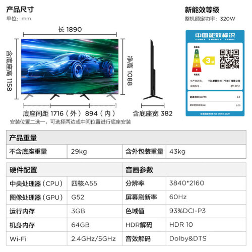 当前的位置: 首页 > 今日值得买 > FFALCON雷鸟 85英寸鹏6PLUS 3+64GB 超薄全面屏 4K超高清 游戏智慧屏液晶平板电视 85S365C