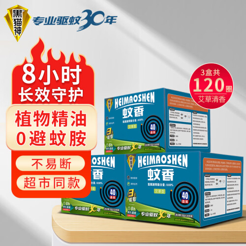 当前的位置: 首页 > 今日值得买 > 黑猫神蚊香加大盘40盘/盒*3盒装 艾草香型室内外驱蚊防蚊灭蚊家用不易断