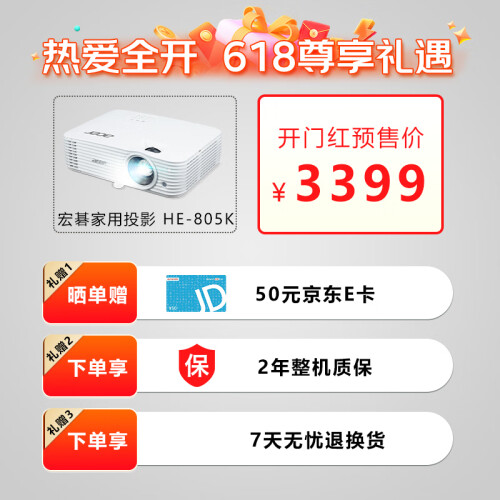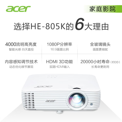 当前的位置: 首页 > 今日值得买 > 宏碁(Acer)HE-805K 投影机 投影仪家用 投影电视(1080P 4000流明 6段色轮 HDMI 3D )