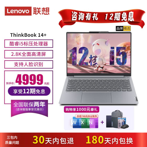 当前的位置: 首页 > 今日值得买 > ThinkPad联想ThinkBook 14+ 2023款可选 13代酷睿i5/i7游戏高刷笔记本电脑 i5-12500H 2.8K屏90Hz 16G内存 512G高速固态 人脸解锁 原厂标配