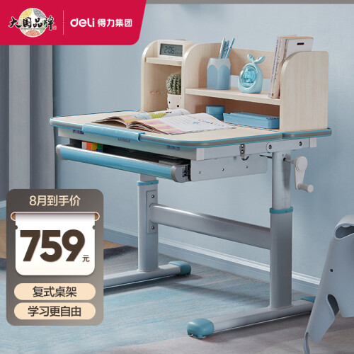 当前的位置: 首页 > 今日值得买 > 得力 deli 儿童书桌 带书架写字桌 可升降学习桌80CM 87006蓝色(单桌)