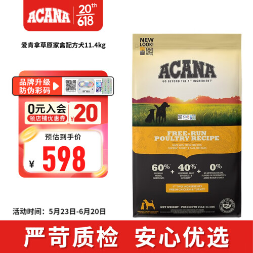 当前的位置: 首页 > 今日值得买 > 爱肯拿ACANA狗粮美版草原家禽配方犬粮 11.4kg全阶段通用狗粮