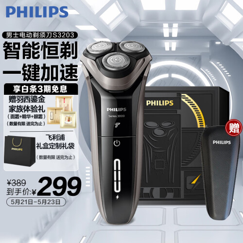 当前的位置: 首页 > 今日值得买 > 飞利浦(PHILIPS)男士电动剃须刀干湿双剃刮胡刀新3系升级限量礼盒款S3203/08 【送男友 送老公】