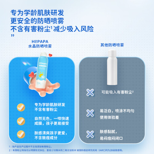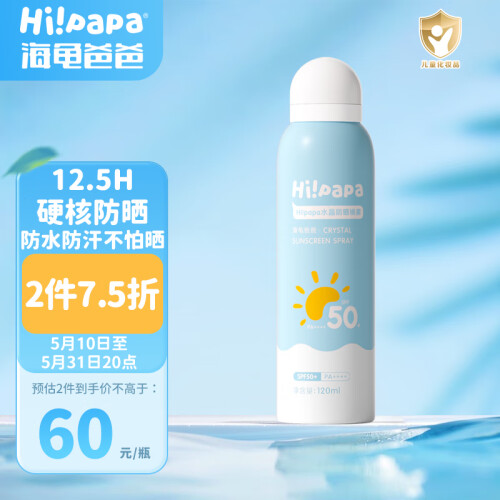 当前的位置: 首页 > 今日值得买 > Hi!papa海龟爸爸儿童防晒喷雾120ml 男女学生军训防紫外线 SPF50防水