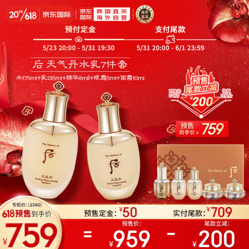 当前的位置: 首页 > 今日值得买 > 后(The history of Whoo)Whoo天气丹花献光彩紧颜水乳护肤品7件套盒套装333ml 专柜版 预售