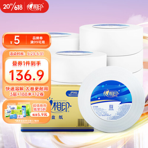 当前的位置: 首页 > 今日值得买 > 心相印卷纸商用大盘纸3层188米*12卷 卫生纸珍宝纸商场酒店(整箱销售)
