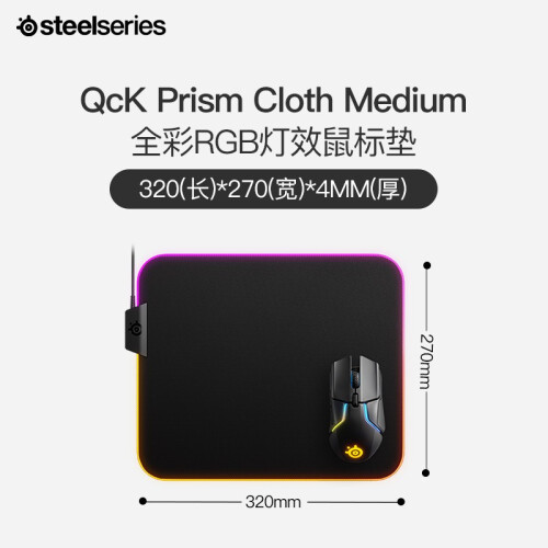 当前的位置: 首页 > 今日值得买 > 赛睿(SteelSeries)QcK Prism Cloth Medium 320*270*4mm 双区域RGB灯效 橡胶地基 包边鼠标垫 炫彩RGB版