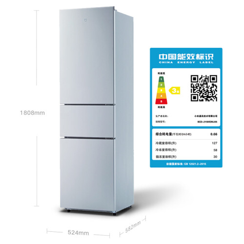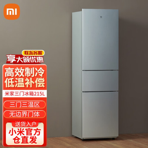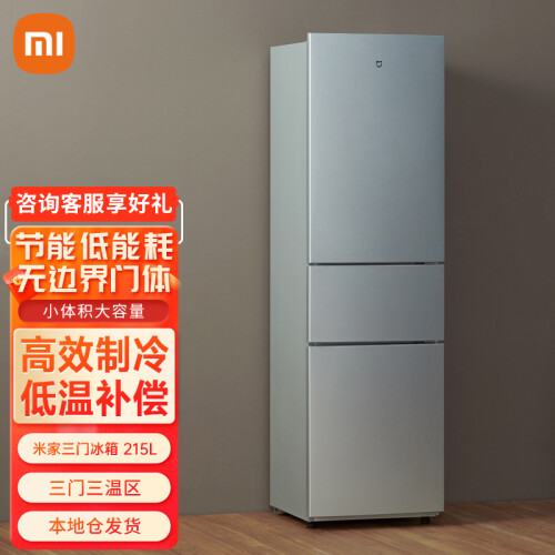 当前的位置: 首页 > 今日值得买 > 小米(MI)【本地仓速发】小米 米家三门小型家用冰箱节能静音小冰箱215L 铂银