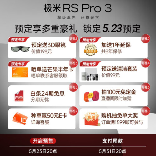 当前的位置: 首页 > 今日值得买 > 极米(XGIMI) RS Pro3 投影机 投影仪 超级混光光源 4K超清 无损光学变焦 RS PRO3