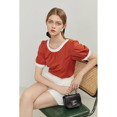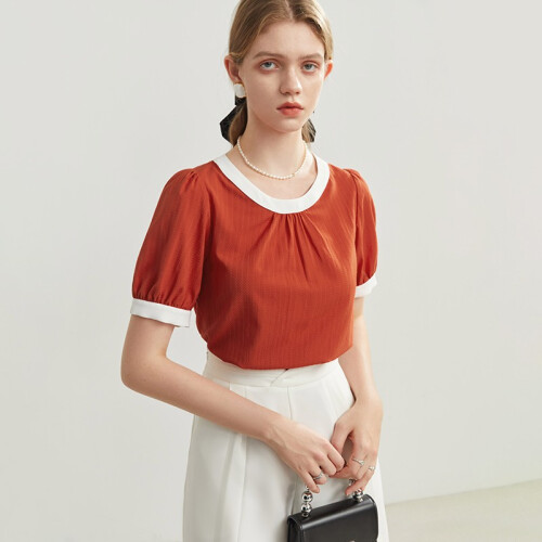 当前的位置: 首页 > 今日值得买 > FANSILANEN范思蓝恩22FS2379复古撞色圆领衬衫夏季新款宽松显瘦直筒套头衬衣 复古红 M