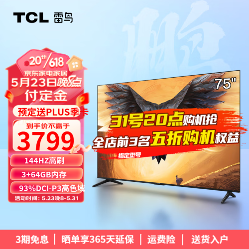 当前的位置: 首页 > 今日值得买 > TCL 雷鸟鹏7 Pro 75英寸144hz刷新率AI远场语音全面屏4k超高清智能液晶电视机 以旧换新 75英寸 鹏7 PRO