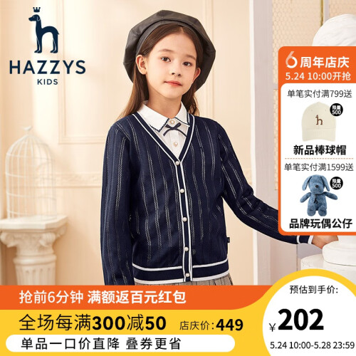 当前的位置: 首页 > 今日值得买 > 哈吉斯(HAZZYS)品牌童装女童线衣春新品儿童透气亲肤v领简约镂空开衫线衣 藏蓝 165