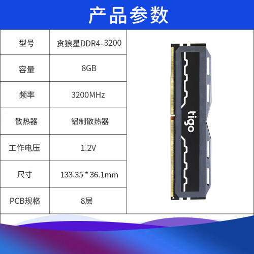 当前的位置: 首页 > 今日值得买 > 金泰克 tigo/贪狼星DDR4 2666 3000 3200台式机内存条散热马甲条单条 贪狼星 8G 3200