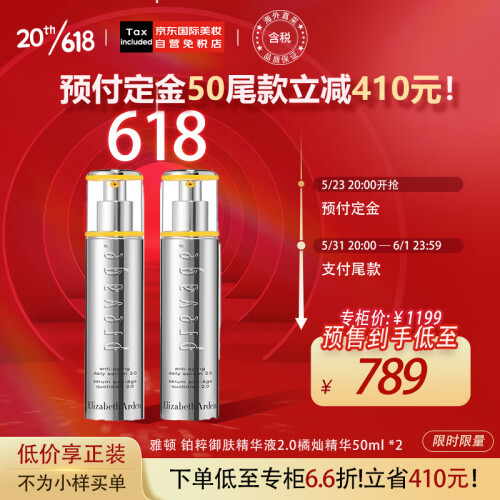 当前的位置: 首页 > 今日值得买 > 伊丽莎白雅顿(Elizabeth Arden)铂粹御肤精华液2.0橘灿精华50ml *2 含艾地苯精华 618预售