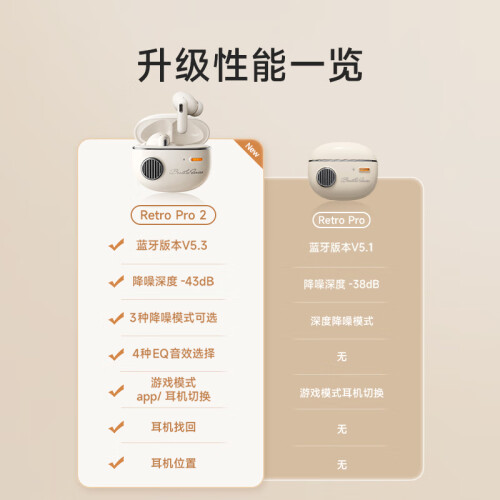 当前的位置: 首页 > 今日值得买 > 漫步者花再 Retro Pro 2 真无线主动降噪蓝牙耳机 蓝牙5.3 无线耳机 礼物礼盒 适用苹果华为小米手机 云岩白