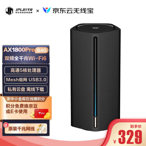 当前的位置: 首页 > 今日值得买 > 京东云无线宝 能赚京豆的云路由器 AX1800Pro64G 高通5核处理器 WIFI6 5G双频高速 游戏路由 京东电竞联名
