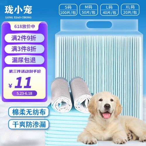当前的位置: 首页 > 今日值得买 > 珑小宠宠物尿垫狗狗尿片厕所猫咪训导尿布防漏垫子 狗狗加厚生理隔尿垫 中号M 50片装(45*60cm)