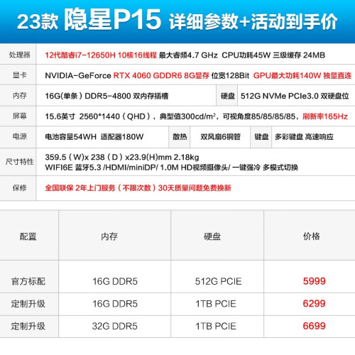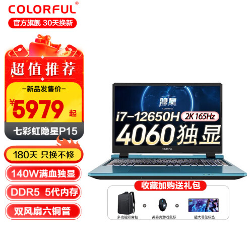 七彩虹(Colorful)将星X15AT-23款40系新品13代酷睿4050/4060/4070满血游戏笔记本电脑 隐星P15 i7-12650H/4060/2K高刷 16G/512G固态/标配