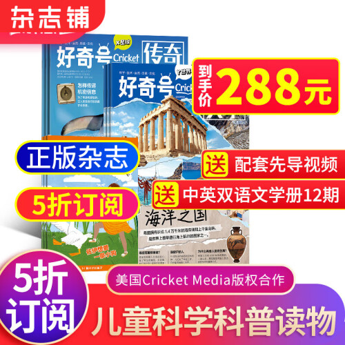 当前的位置: 首页 > 今日值得买 > 【5折+送好礼】好奇号杂志 2023年1月起订阅 1年共12期杂志铺青少年科普百科图书美国Cricket Media版权合作6-12岁少儿阅读小学生课外读物