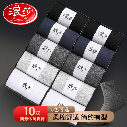 当前的位置: 首页 > 今日值得买 > 浪莎(LangSha)10双袜子男中筒长袜四季男士运动短男袜商务休闲棉袜 黑2藏青2深灰2浅灰2白2中筒 均码