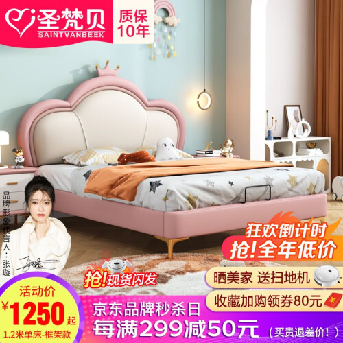 当前的位置: 首页 > 今日值得买 > 圣梵贝儿童床女孩公主床皇冠皮艺床1.5米粉色云朵少女学生单双人实木床 单床【颜色备注】 1.2m*2.0m框架结构