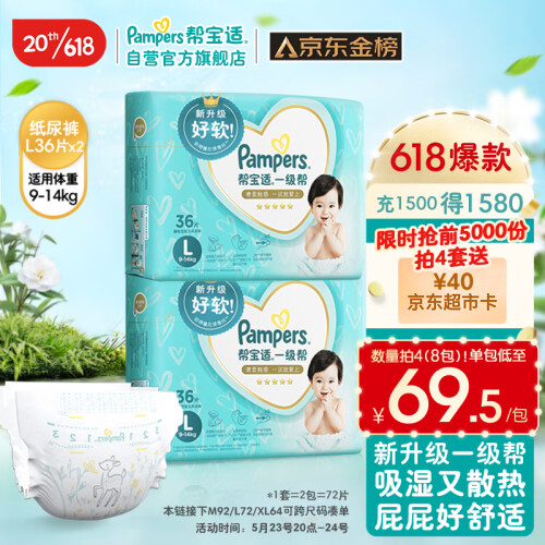 当前的位置: 首页 > 今日值得买 > 帮宝适一级帮纸尿裤L72片(9-14kg)尿不湿尿裤超薄透气 散热