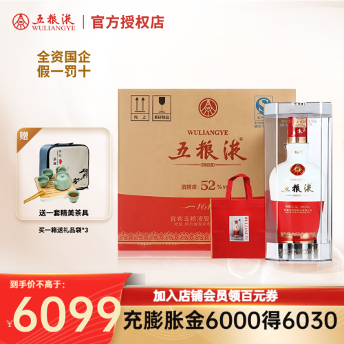 当前的位置: 首页 > 今日值得买 > 五粮液1618 浓香型52度白酒 经典国货 送礼 瓶装酒500ml 喜酒婚宴用酒 500ml*6瓶