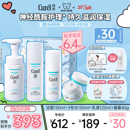 当前的位置: 首页 > 今日值得买 > 珂润(Curel)润浸保湿四件套(洁面+3号水+乳液+面霜)补水保湿 礼物【预售】