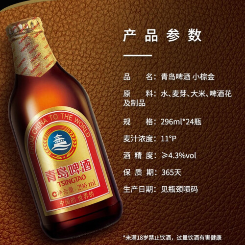 当前的位置: 首页 > 今日值得买 > 青岛啤酒小棕金296ml*24瓶小瓶德国啤酒风味瓶装整箱玻璃瓶啤酒青啤官方店