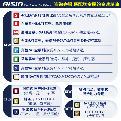 当前的位置: 首页 > 今日值得买 > 爱信AFW6G通用系6-9速自动变速箱油波箱油德士龙VI专用12升1L4L随机发