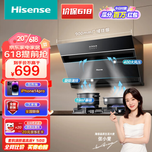 当前的位置: 首页 > 今日值得买 > 海信(Hisense)油烟机 顶侧双吸式 抽油烟机 吸油烟机 家用侧吸式油烟机 19风量 低噪瞬吸直排 以旧换新DJ905A