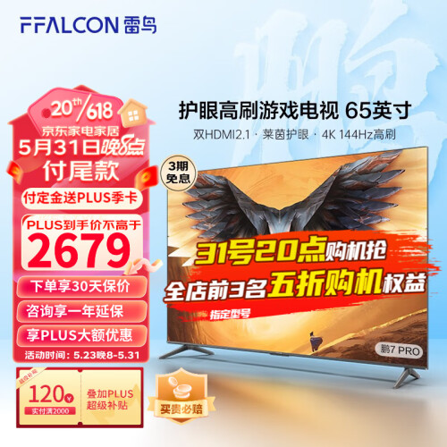 当前的位置: 首页 > 今日值得买 > FFALCON雷鸟 鹏7PRO 游戏电视 65英寸 144Hz高刷 HDMI2.1 智慧屏 3+64GB 4K超高清超薄液晶电视65S575C 65英寸 65鹏7 PRO