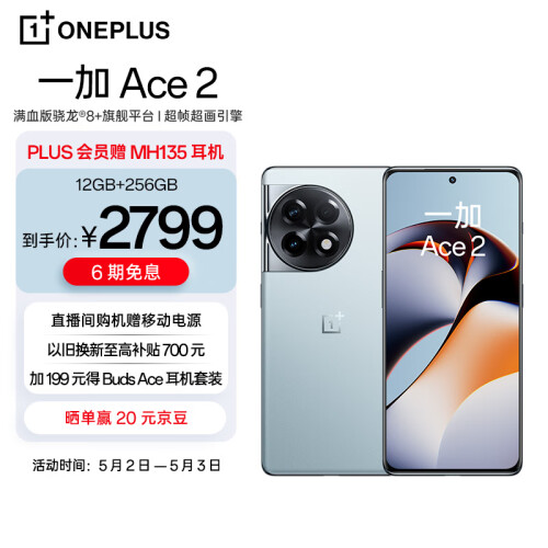 当前的位置: 首页 > 今日值得买 > OPPO 一加 Ace 2 12GB+256GB 冰河蓝 满血版骁龙®8+旗舰平台 1.5K灵犀触控屏 超帧超画引擎 5G游戏电竞手机