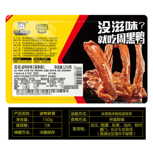 当前的位置: 首页 > 今日值得买 > 周黑鸭 锁鲜星享鸭锁骨150g 武汉特产 即食卤味 气调盒装
