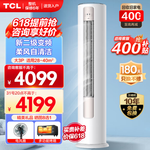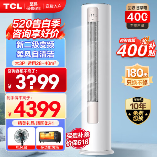 当前的位置: 首页 > 今日值得买 > TCL空调立式柜机大2匹/3匹家用冷暖 节能省电 新能效变频节能 客厅圆柱空调 除湿智柔风立式柜机空调 【新品】大3匹二级新能效母婴级柔风适用:28-40