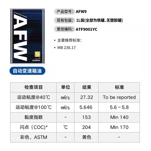 当前的位置: 首页 > 今日值得买 > 爱信AFW9奔驰9速全合成自动变速箱油波箱油ATF C/E/S级迈巴赫S级1升装