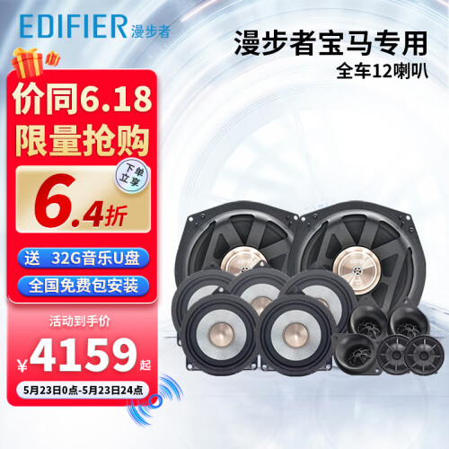 当前的位置: 首页 > 今日值得买 > 漫步者(EDIFIER)汽车音响改装宝马专用全车12喇叭高音*5+中音*5+低音*2无损安装