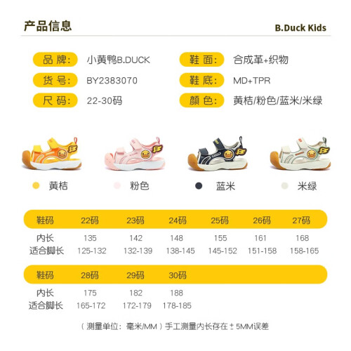 当前的位置: 首页 > 今日值得买 > B.Duck小黄鸭童鞋男童女童凉鞋包头2023夏季儿童鞋小童软底防滑沙滩鞋 米绿 22码内长约135mm