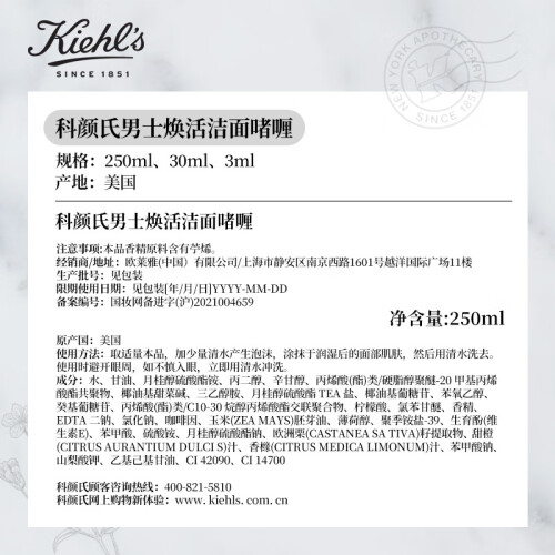 当前的位置: 首页 > 今日值得买 > 科颜氏(Kiehl's)男士焕活洁面啫喱250ml 洗面奶男洁面乳洗脸控油 生日礼物送男友