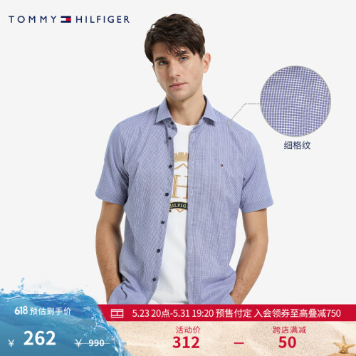 当前的位置: 首页 > 今日值得买 > TOMMY HILFIGER【预售】男装通勤纯棉府绸细格纹小绣标翻领修身短袖衬衫19422 蓝色格纹0HA 38