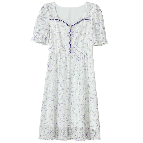 当前的位置: 首页 > 今日值得买 > 秋水伊人优雅蕾丝连衣裙夏季新款女装印花小香风收腰公主裙 本白 S